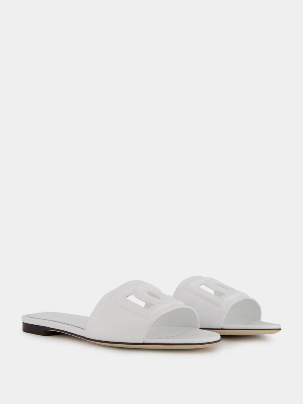 DG Logo White Calfskin Sliders