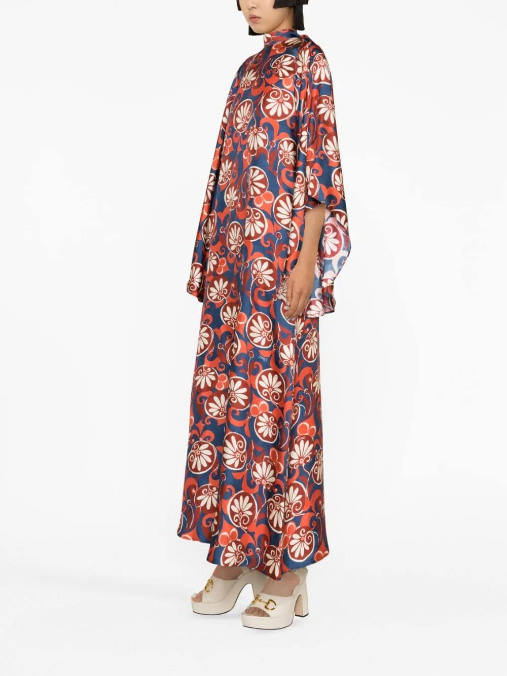 Magnifico long dress, a breathtaking fusion of vibrant multicolours and luxurious silk. This dress is a true masterpiece, designed to make you feel like a vision of elegance and grace. Crafted with the finest silk, it drapes effortlessly and exudes a sense of opulence. The stunning multicoloured pattern adds a mesmerizing allure, making it perfect for formal events or special occasions.