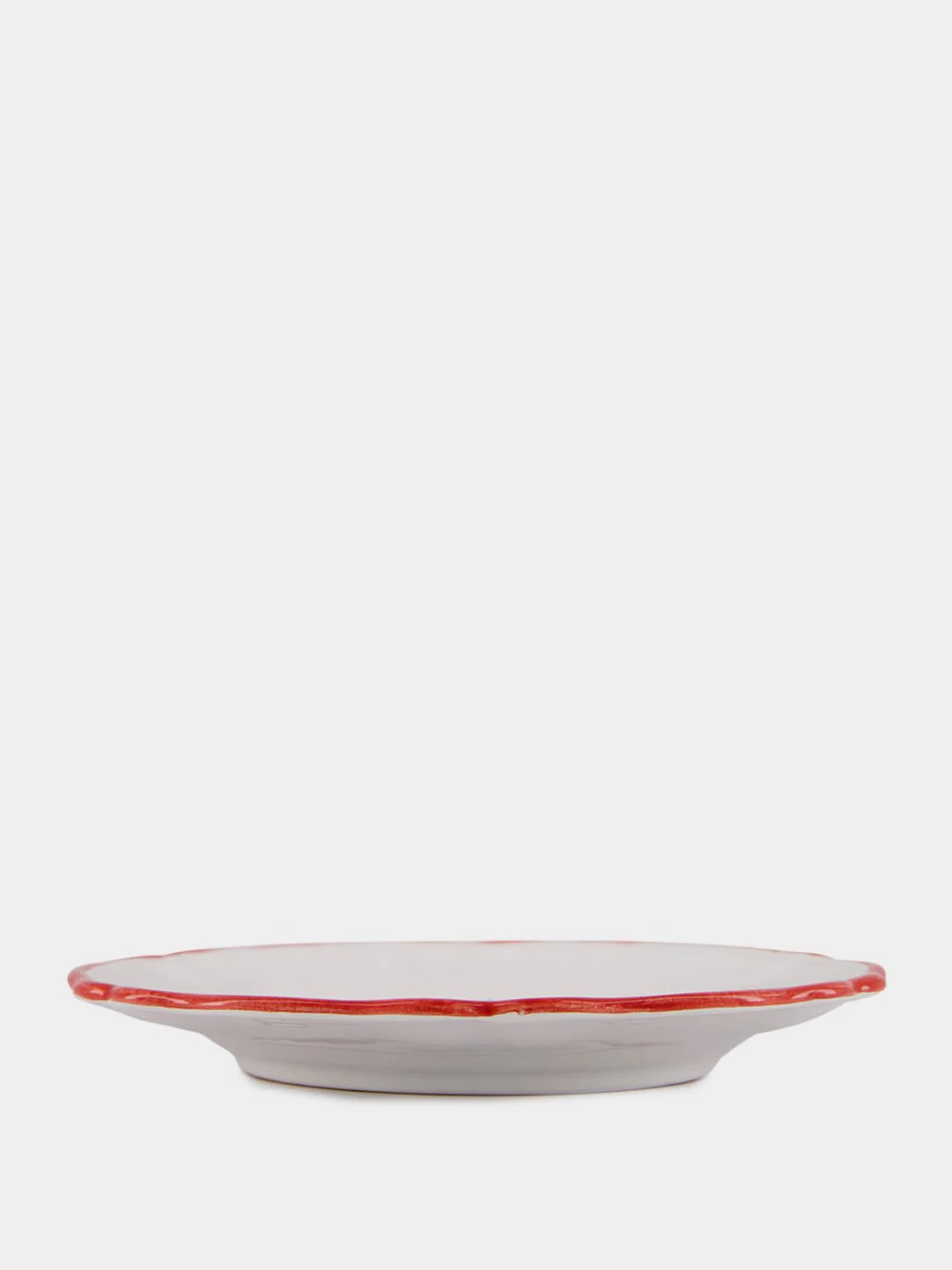 Les Ottomans La Menagerie D'ete collection, white ceramic dinner plate with red trim and handpainted Seahorse.